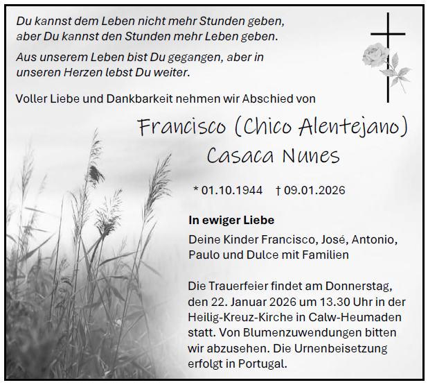 Lieber Francisco, ich war so gerne bei dir. Unser gemeinsames Kaffee trinken und Schinken essen , dass werde ich nie vergessen. Leb wohl und irgendwann sehn wir uns wieder. Lg Annette 🫶